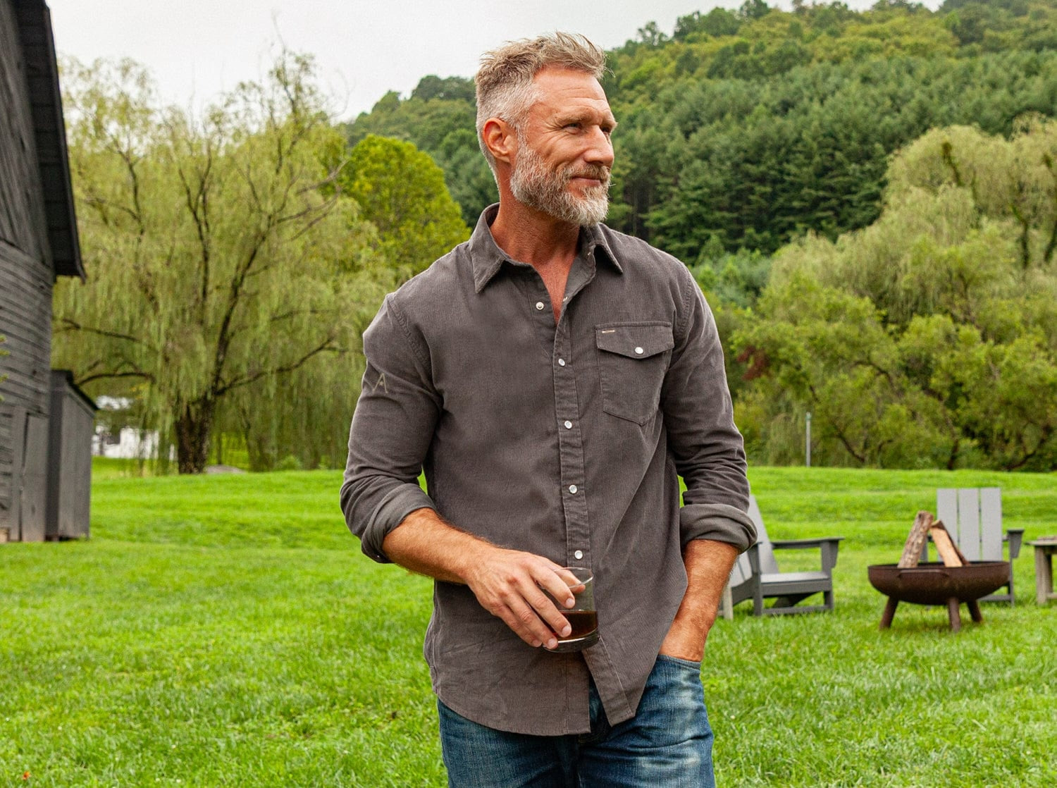 - Austin Golf Club - Corduroy Pearl Snap - Charcoal
